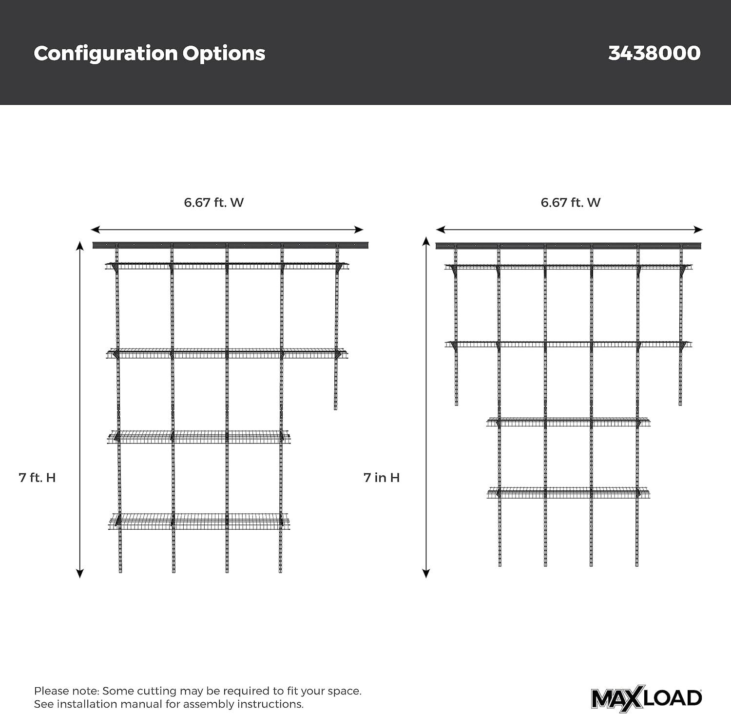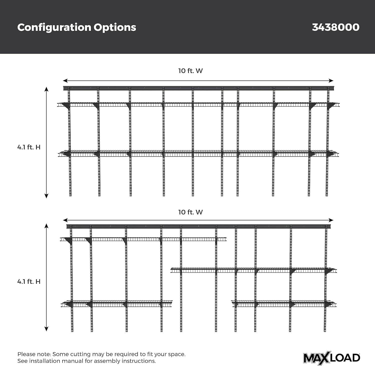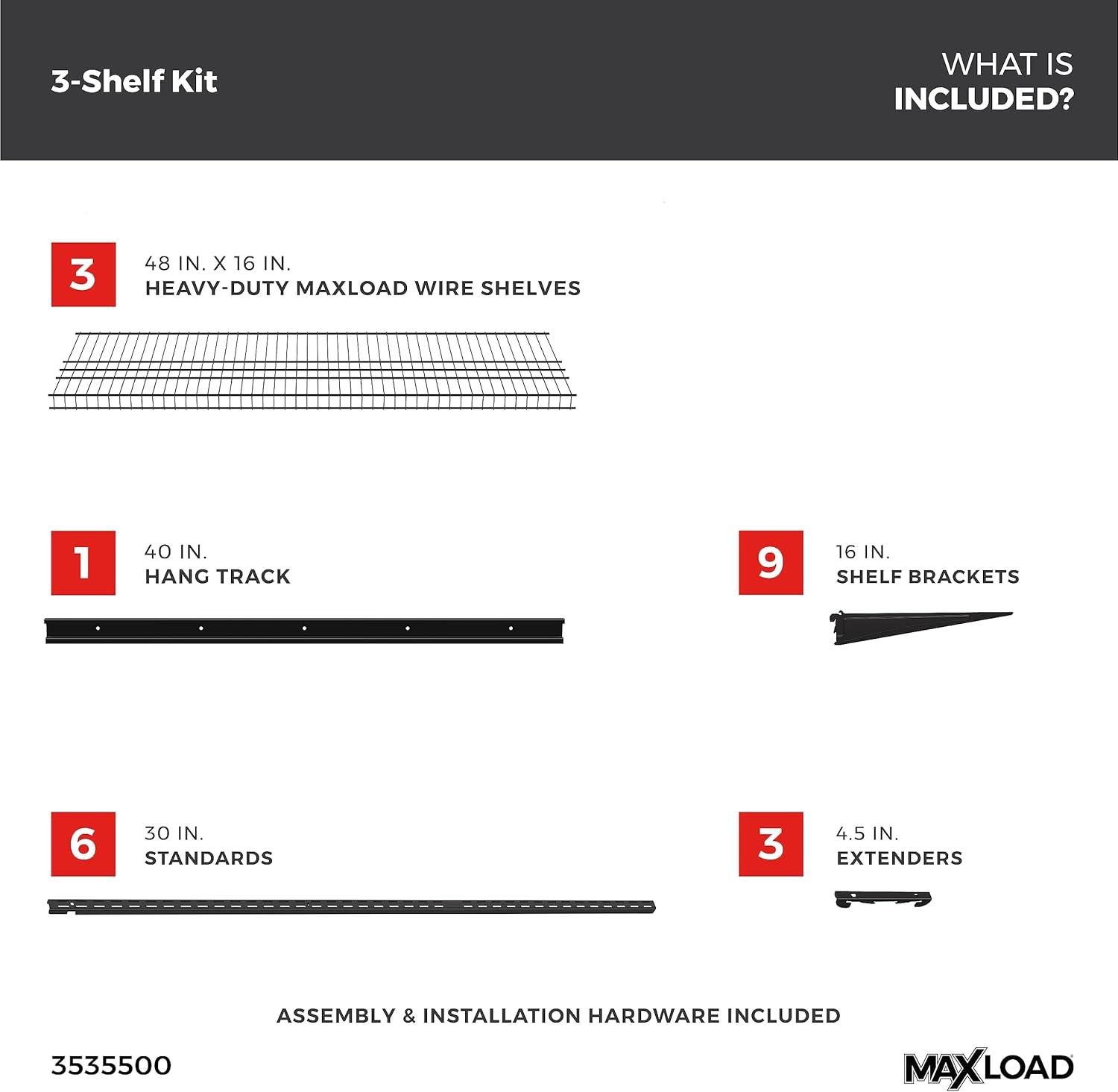 ClosetMaid MaxLoad Heavy Duty Wall Shelf Kit for Garage, 6 – 10 Ft., Adjustable ShelfTrack Wire Shelving, Black Finish(3 shelves)