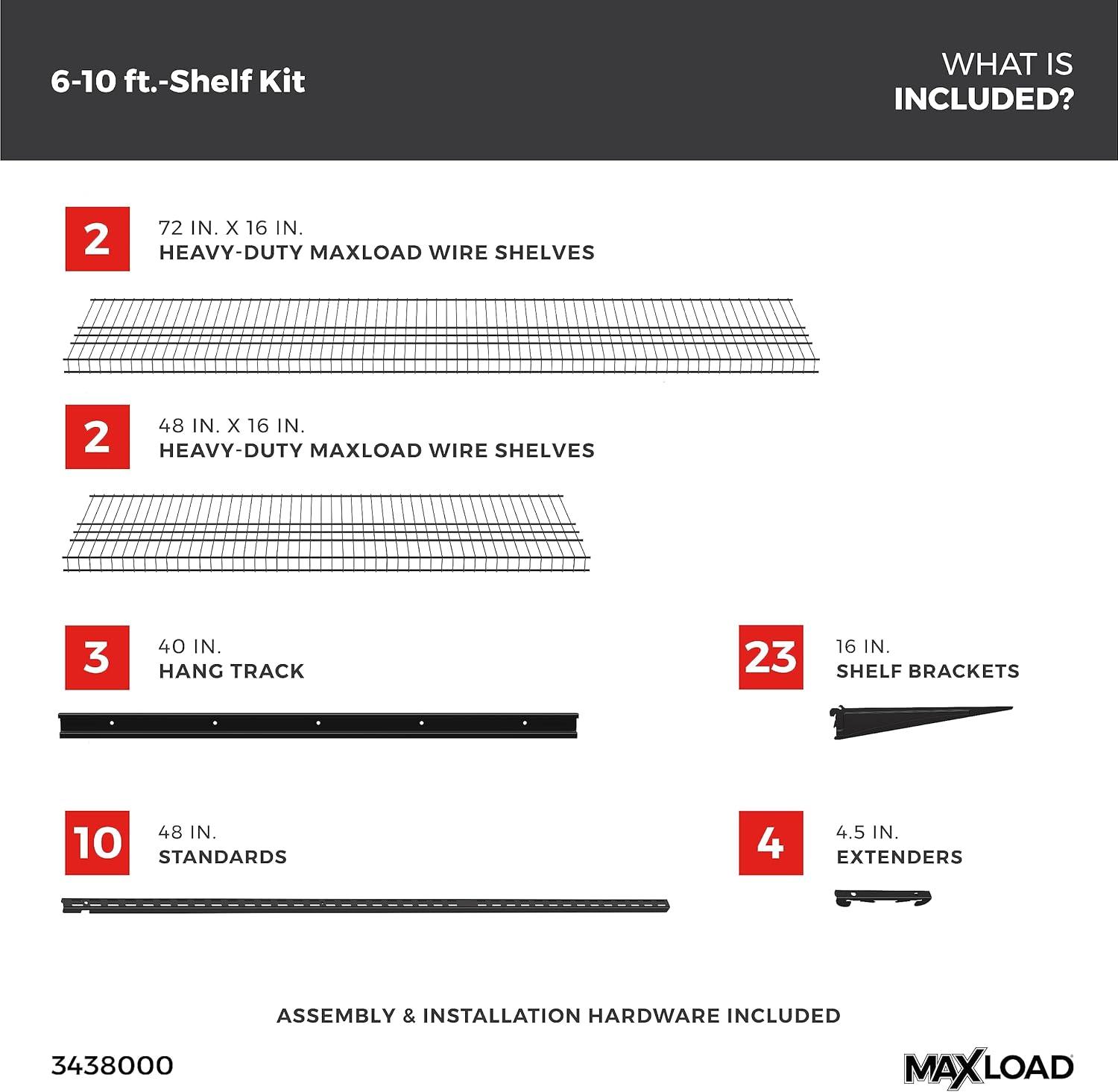 ClosetMaid MaxLoad Heavy Duty Wall Shelf Kit for Garage, 6 – 10 Ft., Adjustable ShelfTrack Wire Shelving, Black Finish(2 shelves)