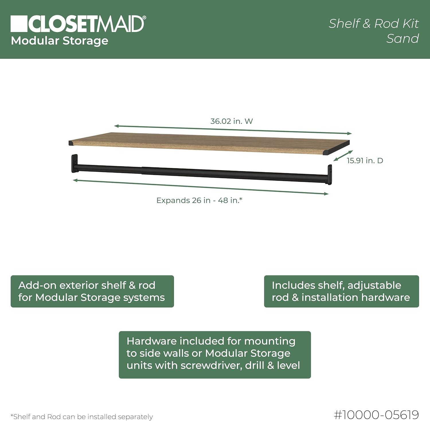 ClosetMaid Modular Shelf & Hang, Wood Organizer Adjustable Closet, Add On Storage Accessory, White, Shelf and Hang Rod Kit(Sand)