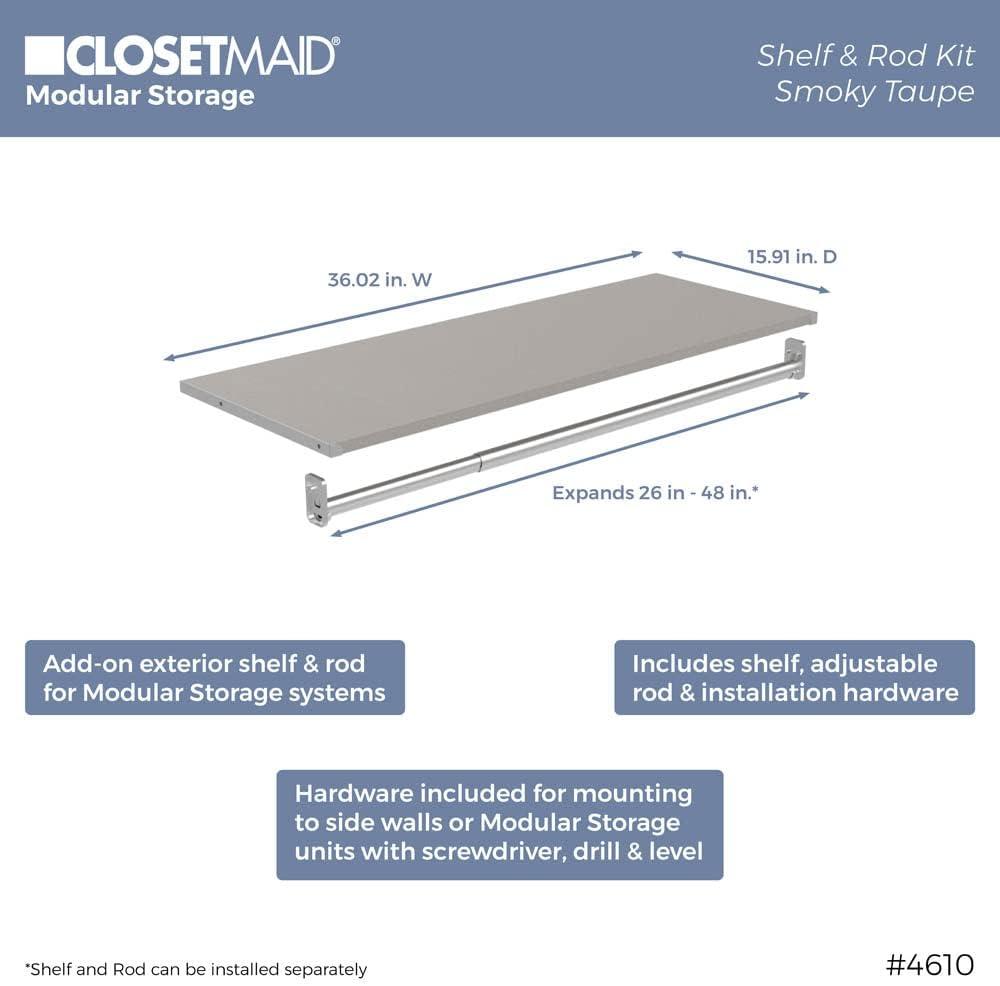 ClosetMaid Modular Shelf & Hang, Wood Organizer Adjustable Closet, Add On Storage Accessory, White, Shelf and Hang Rod Kit(Taupe)