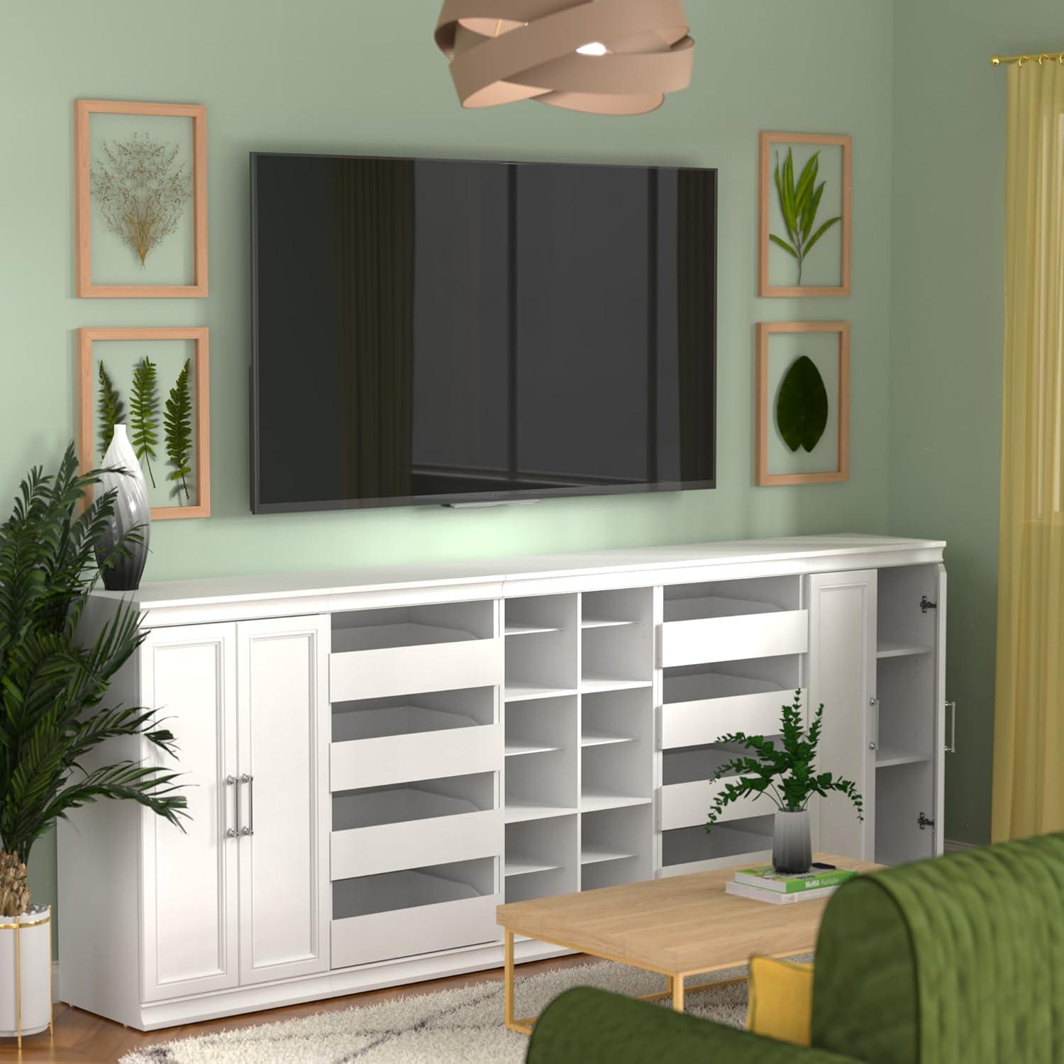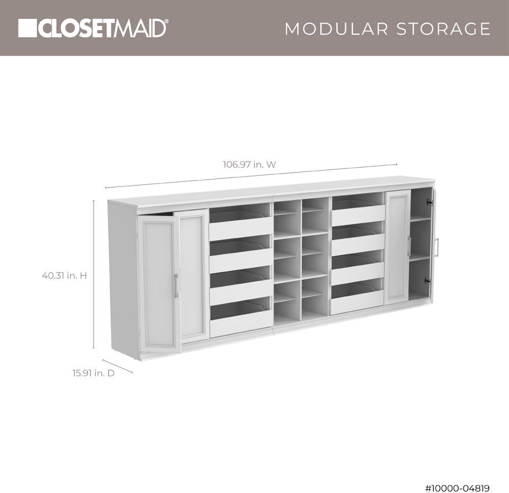 ClosetMaid Modular Storage 106.97-inch W 8-Drawer 18-Shelf Entertainment System with Doors, White(White)