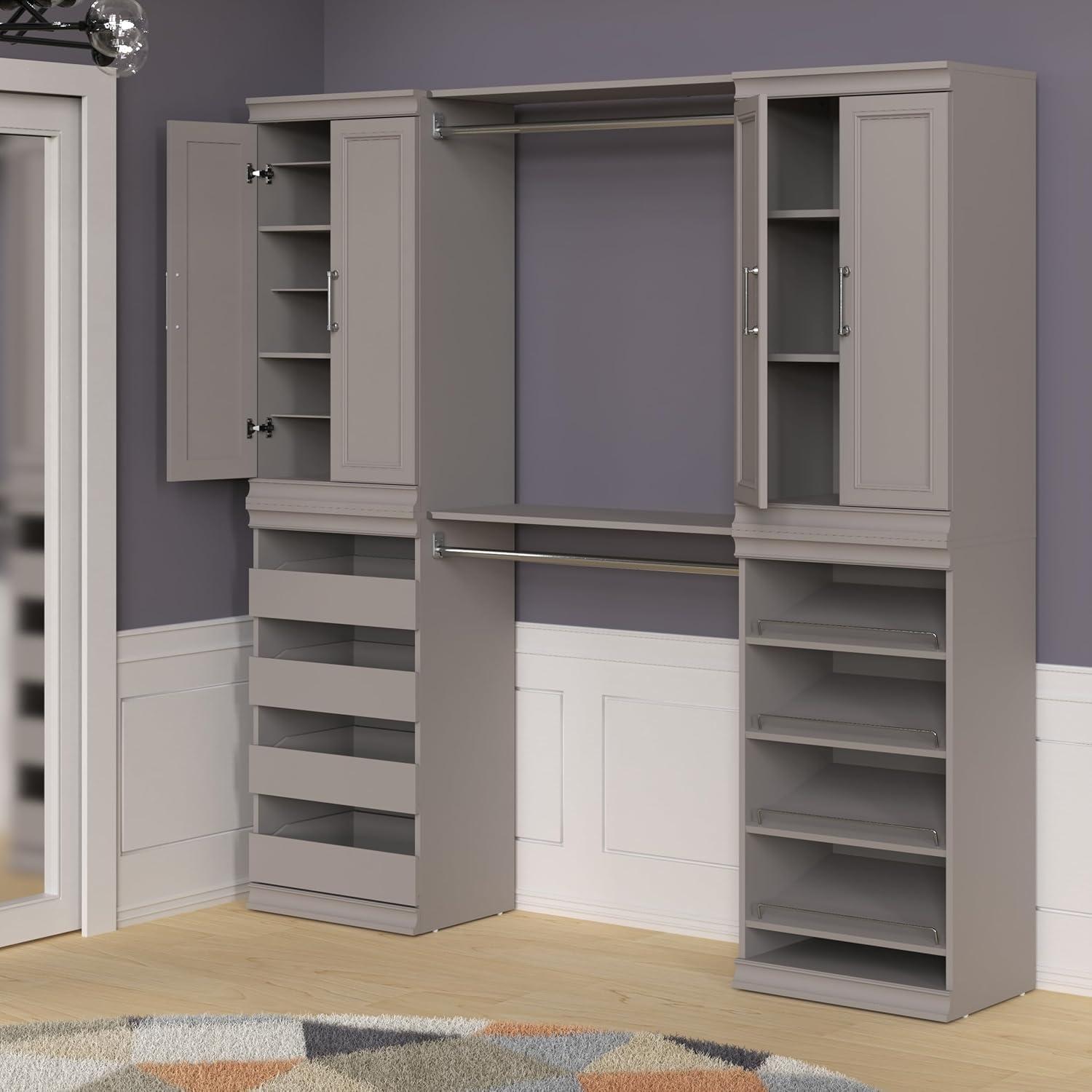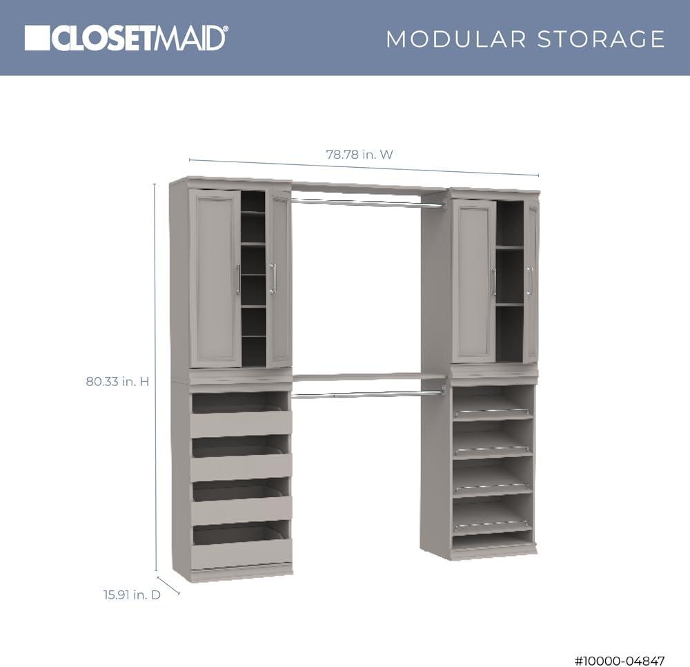 ClosetMaid Modular Storage 68.76-78.78-inch W 4-Drawer 19-Shelf Wood Closet System with Doors, White(Smoky Taupe)