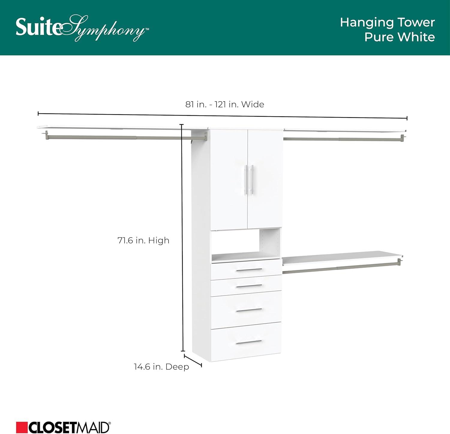 ClosetMaid SuiteSymphony Hanging Closet Kit Includes (1) Tower, (3) Closet Rods, (4) Shelves, (3) Top Shelves w/Brackets, and (4) Drawers, White
