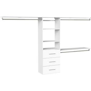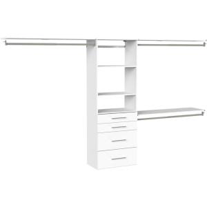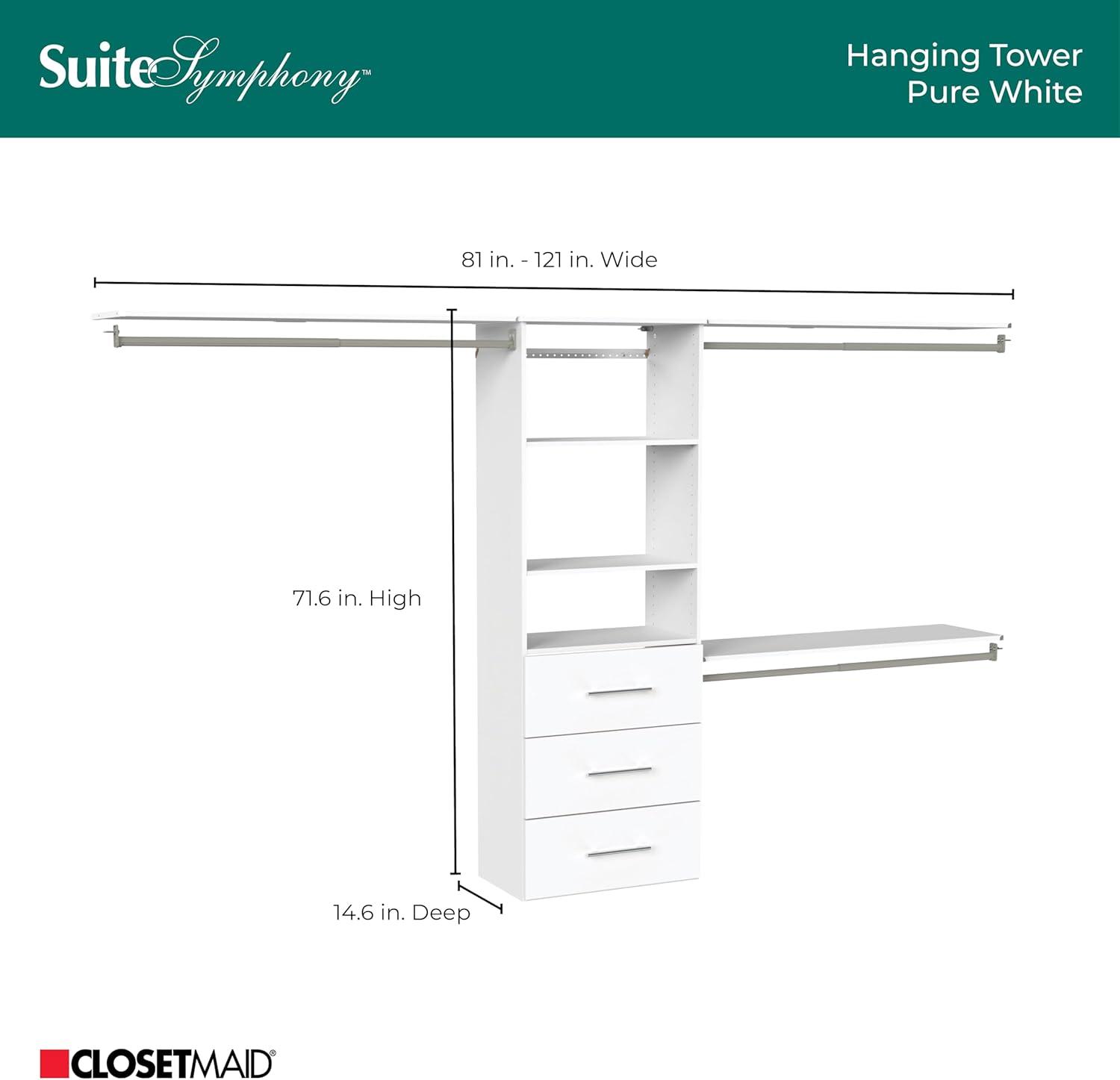 ClosetMaid SuiteSymphony Hanging Closet Kit Includes (1) Tower, (3) Closet Rods, (4) Shelves, (3) Top Shelves w/Brackets, and (3) Drawer, White