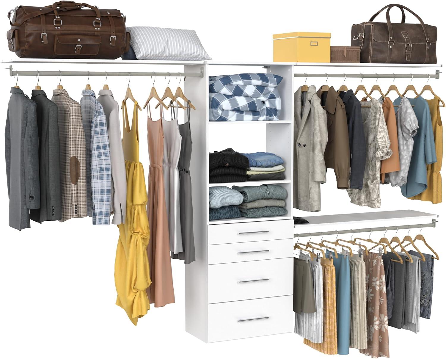 ClosetMaid SuiteSymphony Modern Hanging Closet Kit Includes (1) Tower, (3) Closet Rods, (4) Shelves, (3) Top Shelves w/Brackets, and (4) Drawers, White