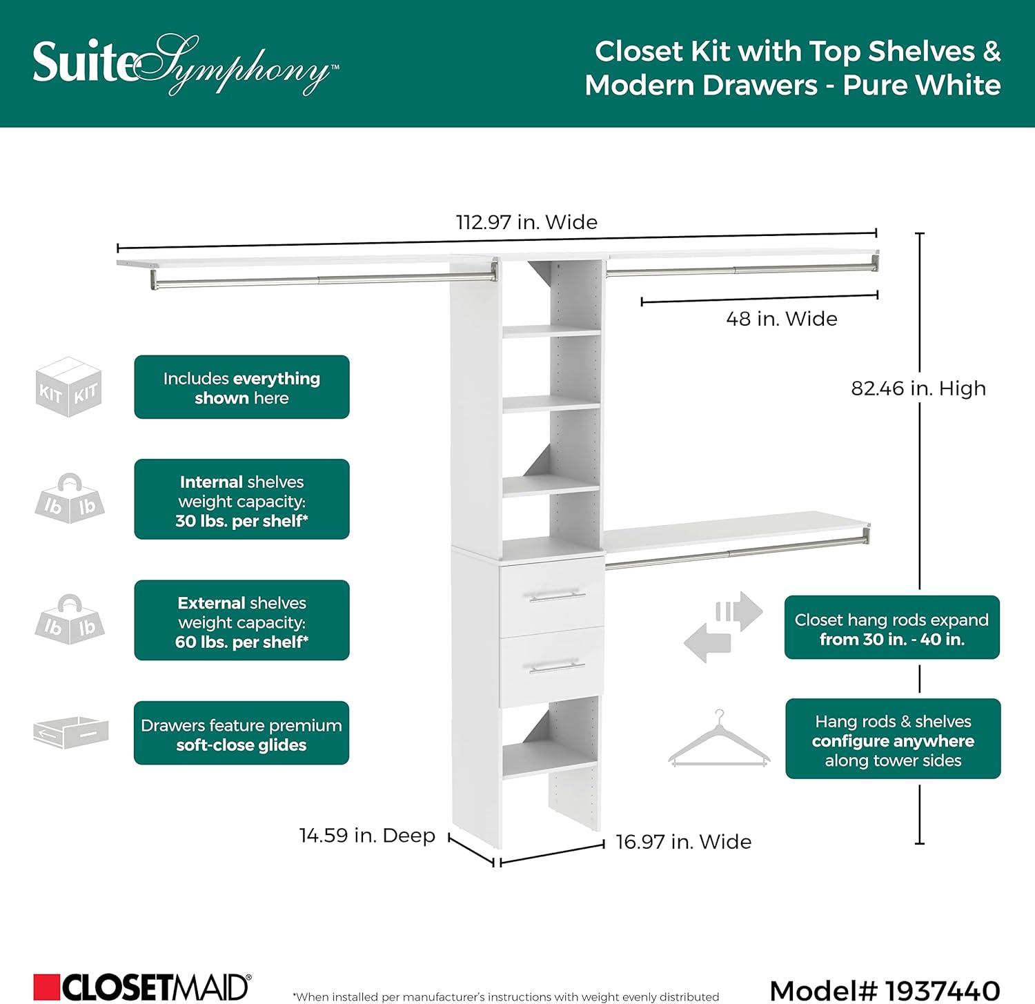 ClosetMaid 1937440 SuiteSymphony Modern 16-Inch Closet Organizer with Shelves and 2-Drawers, Pure White(Pure White)