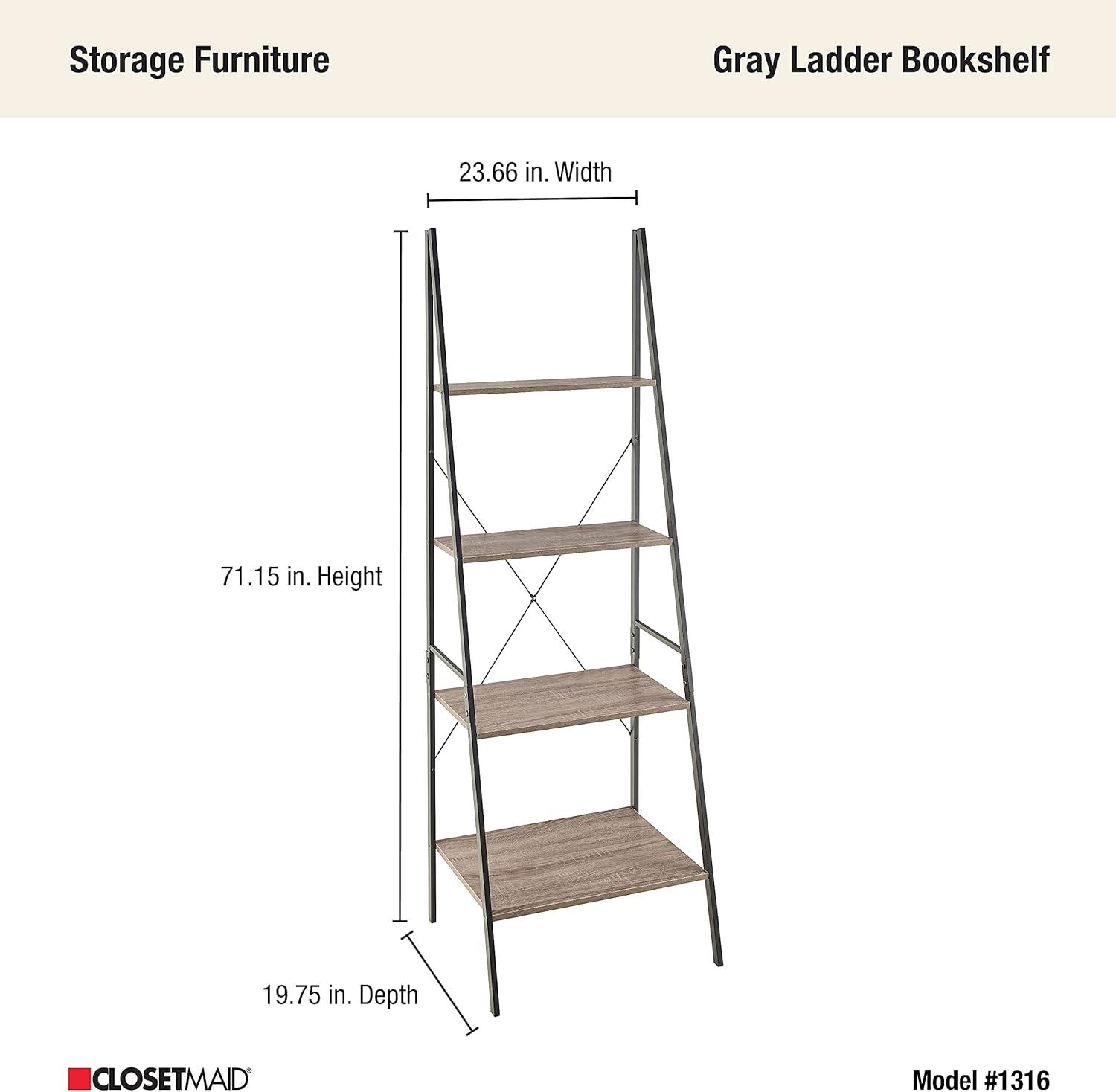 ClosetMaid 1312 4-Tier Wood Ladder Shelf Bookcase, Natural(Grey)