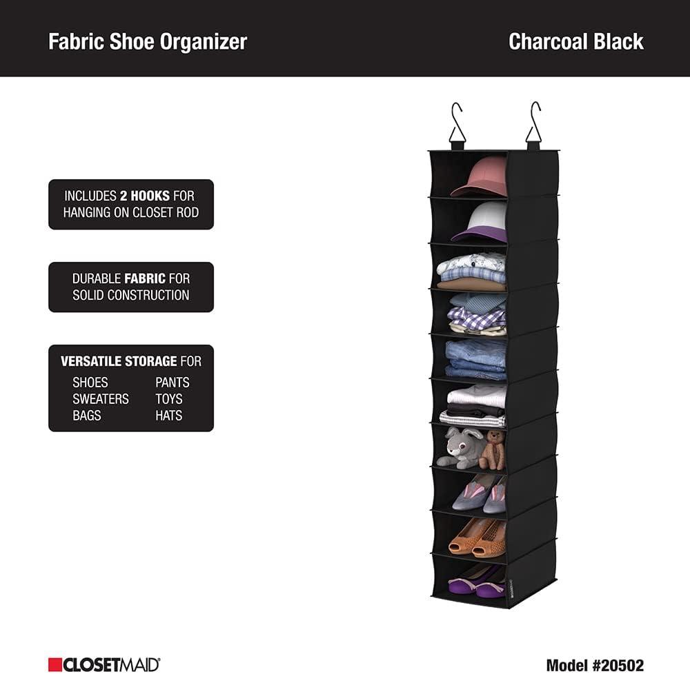 ClosetMaid 20504 Foldable Underbed Storage Bag with Handles, Zipper Closure and Clear Window for Sweaters, Shoes, Blankets with Charcoal Black Finish(10-Shelf Hanging Shoe Organizer)