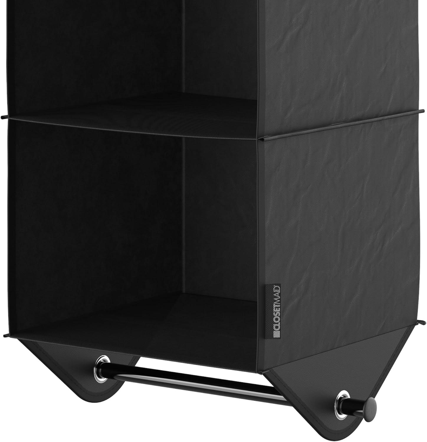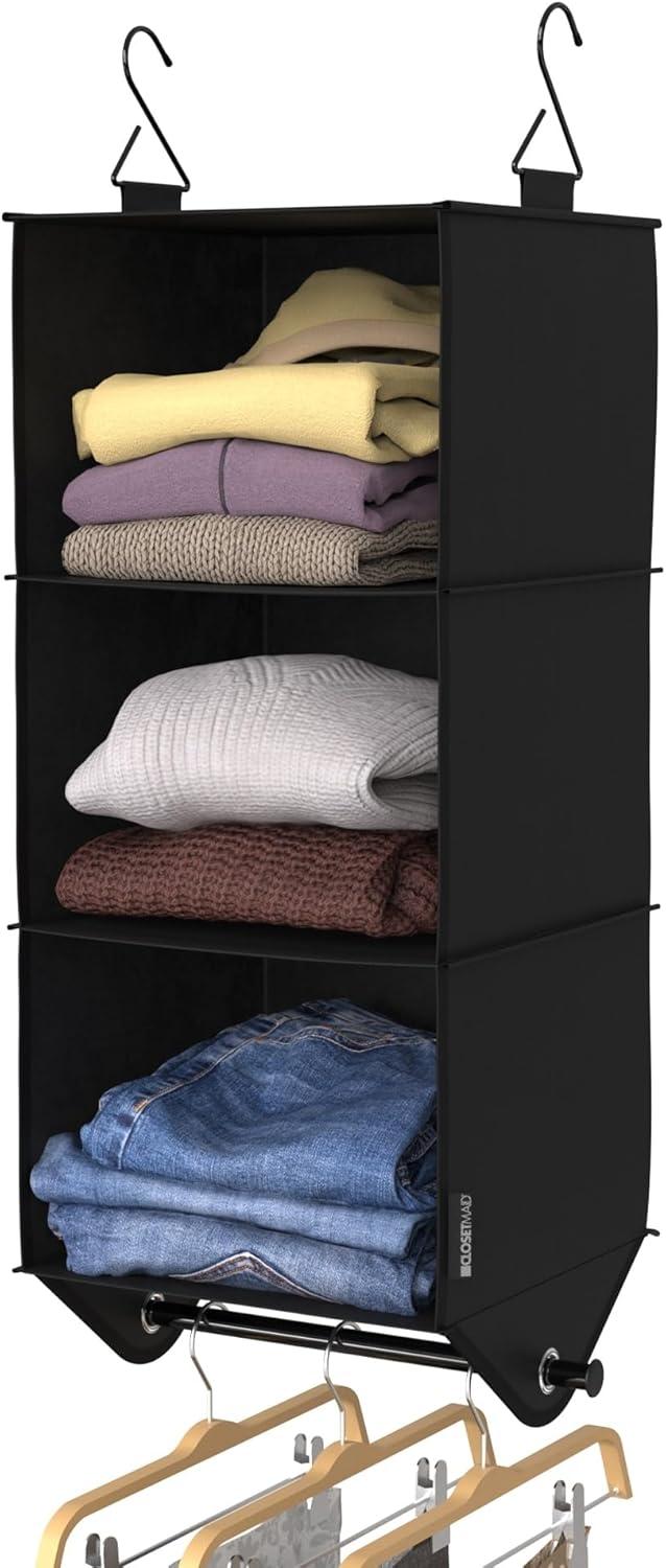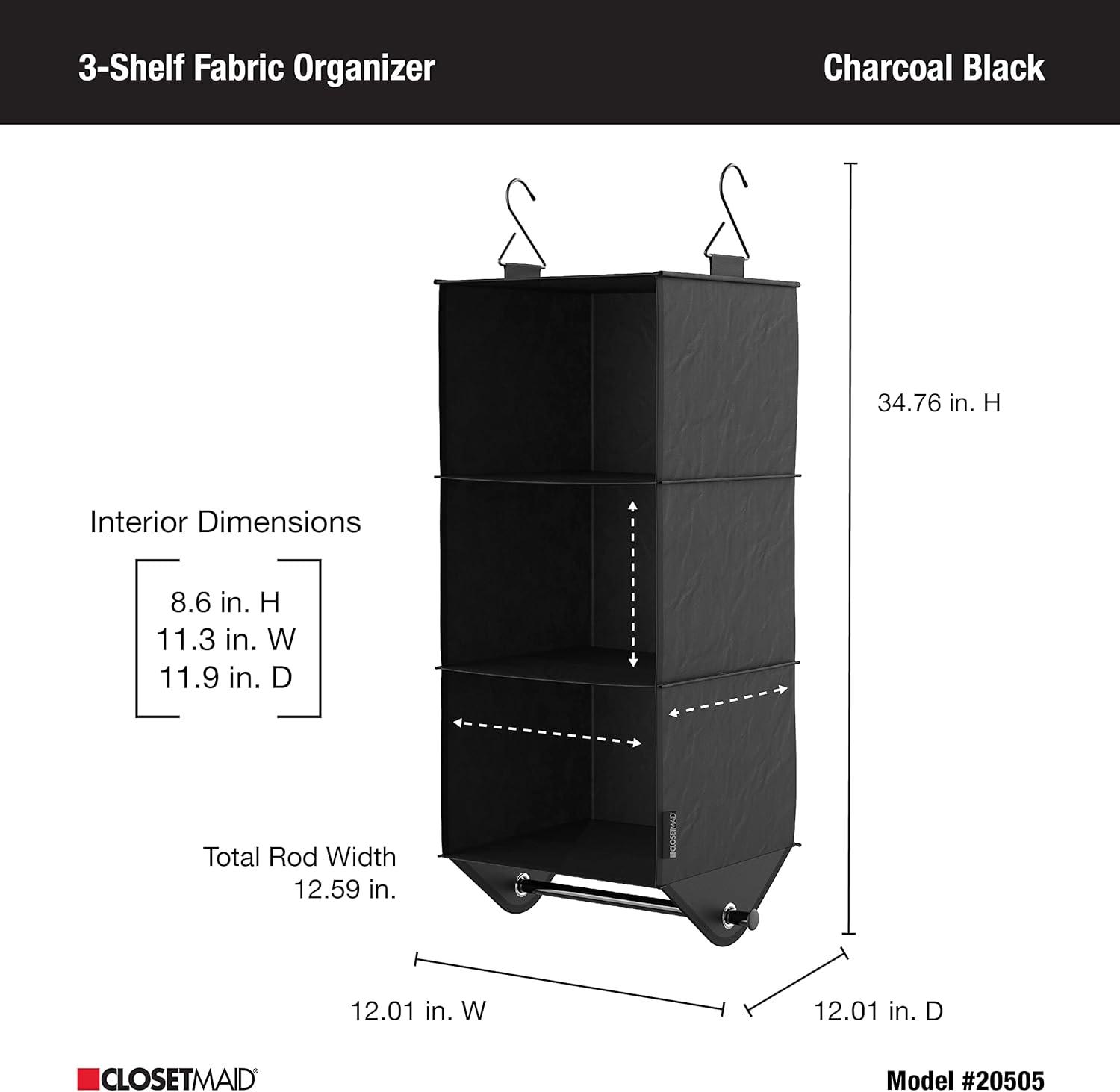 ClosetMaid 20504 Foldable Underbed Storage Bag with Handles, Zipper Closure and Clear Window for Sweaters, Shoes, Blankets with Charcoal Black Finish(3-Shelf Hanging Organizer with Rod)