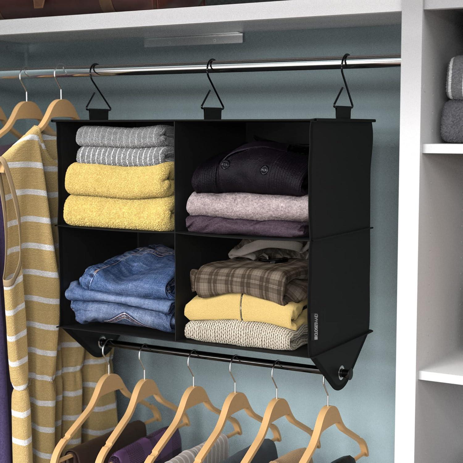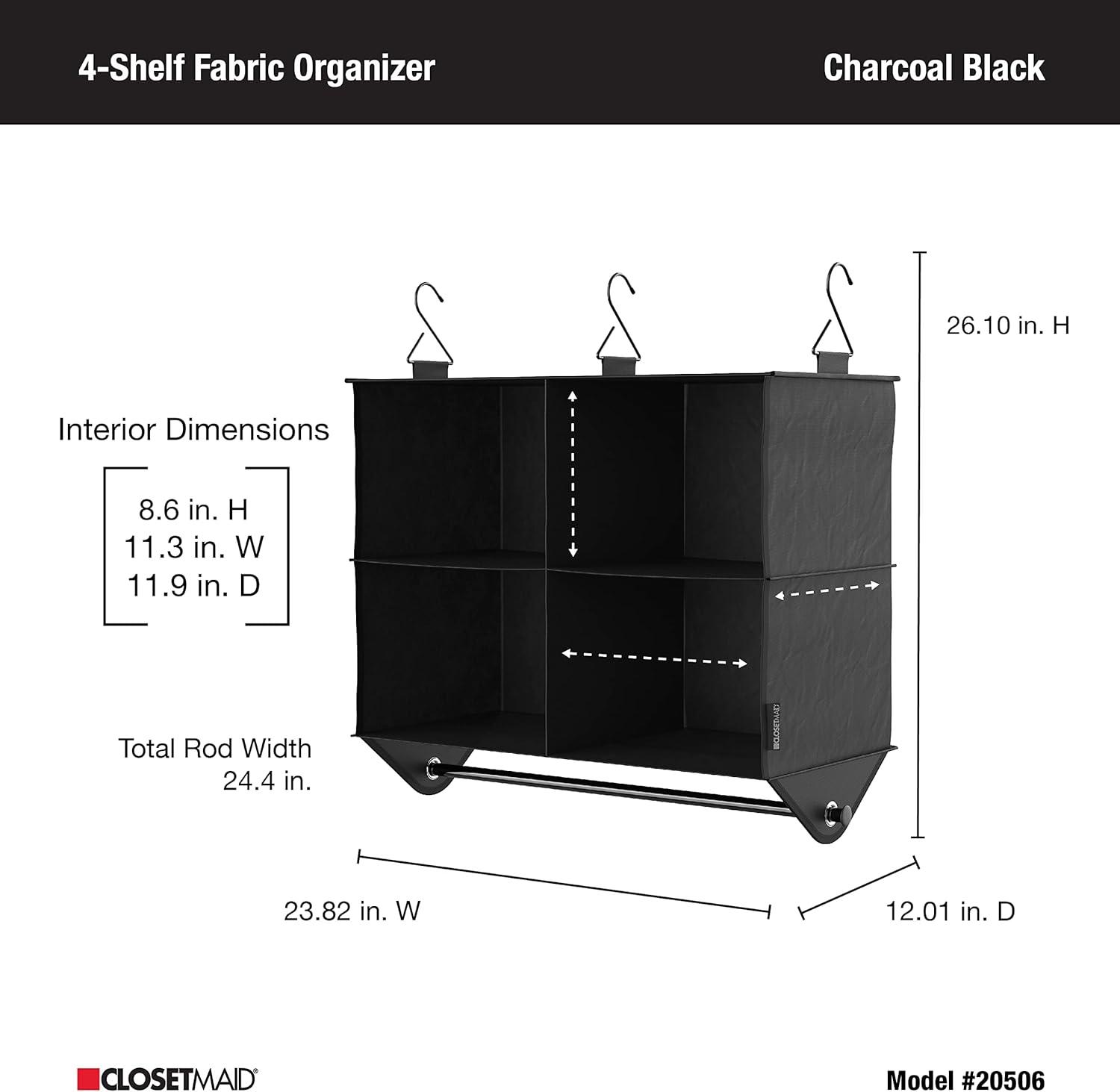 ClosetMaid 20504 Foldable Underbed Storage Bag with Handles, Zipper Closure and Clear Window for Sweaters, Shoes, Blankets with Charcoal Black Finish(4-Shelf Hanging Organizer with Rod)