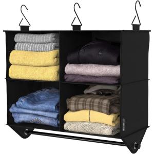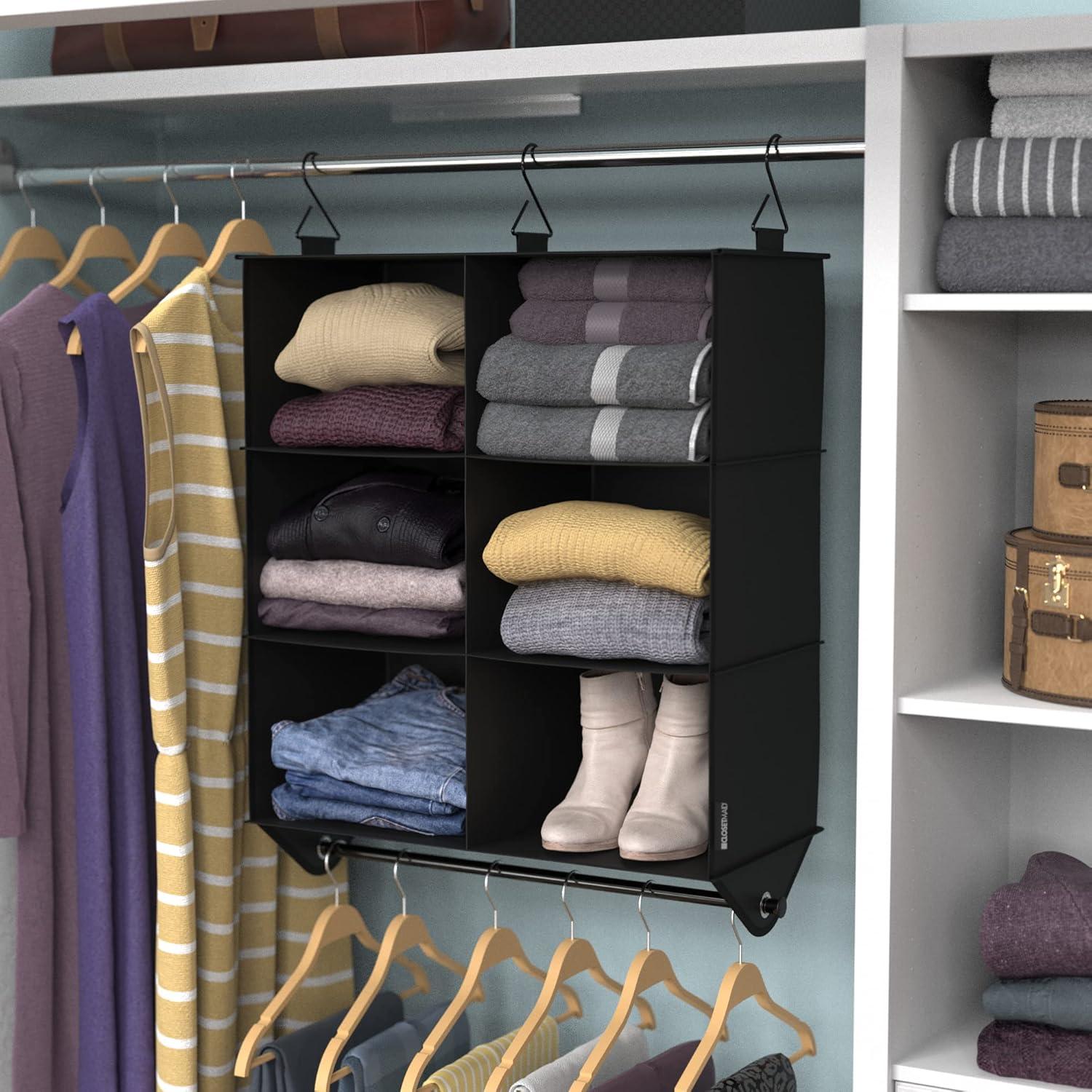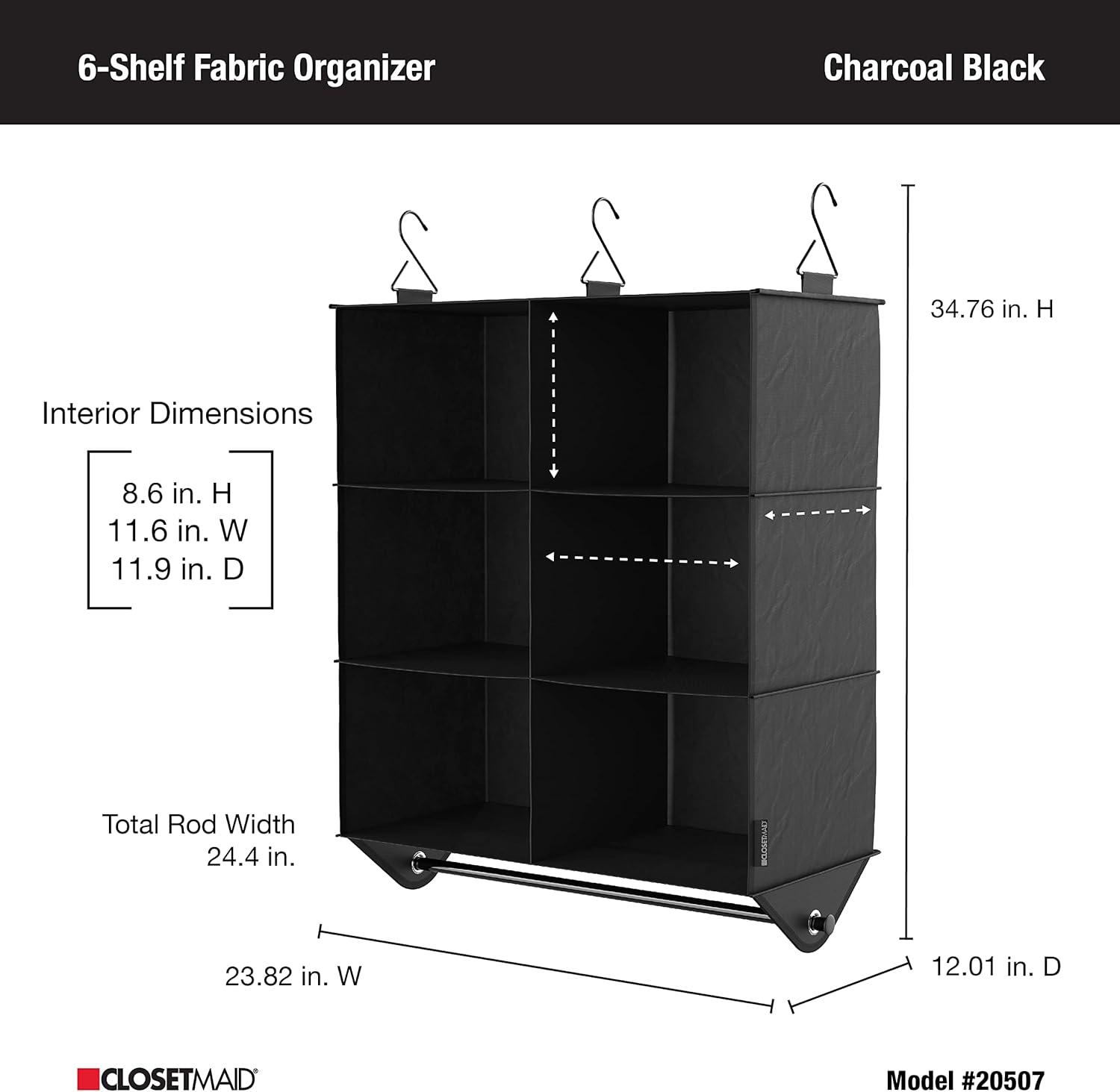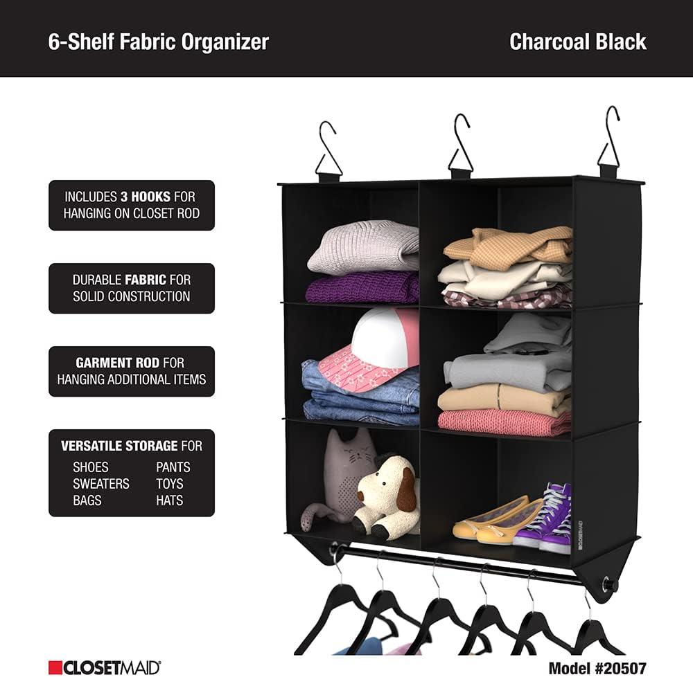 ClosetMaid 20504 Foldable Underbed Storage Bag with Handles, Zipper Closure and Clear Window for Sweaters, Shoes, Blankets with Charcoal Black Finish(6-Shelf Hanging Organizer with Rod)