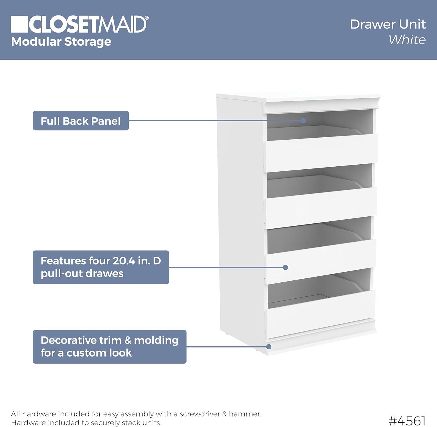 ClosetMaid Modular Storage 21.38-inch W 3-Shelf 4-Drawer Tower Wood Closet System, White(White)