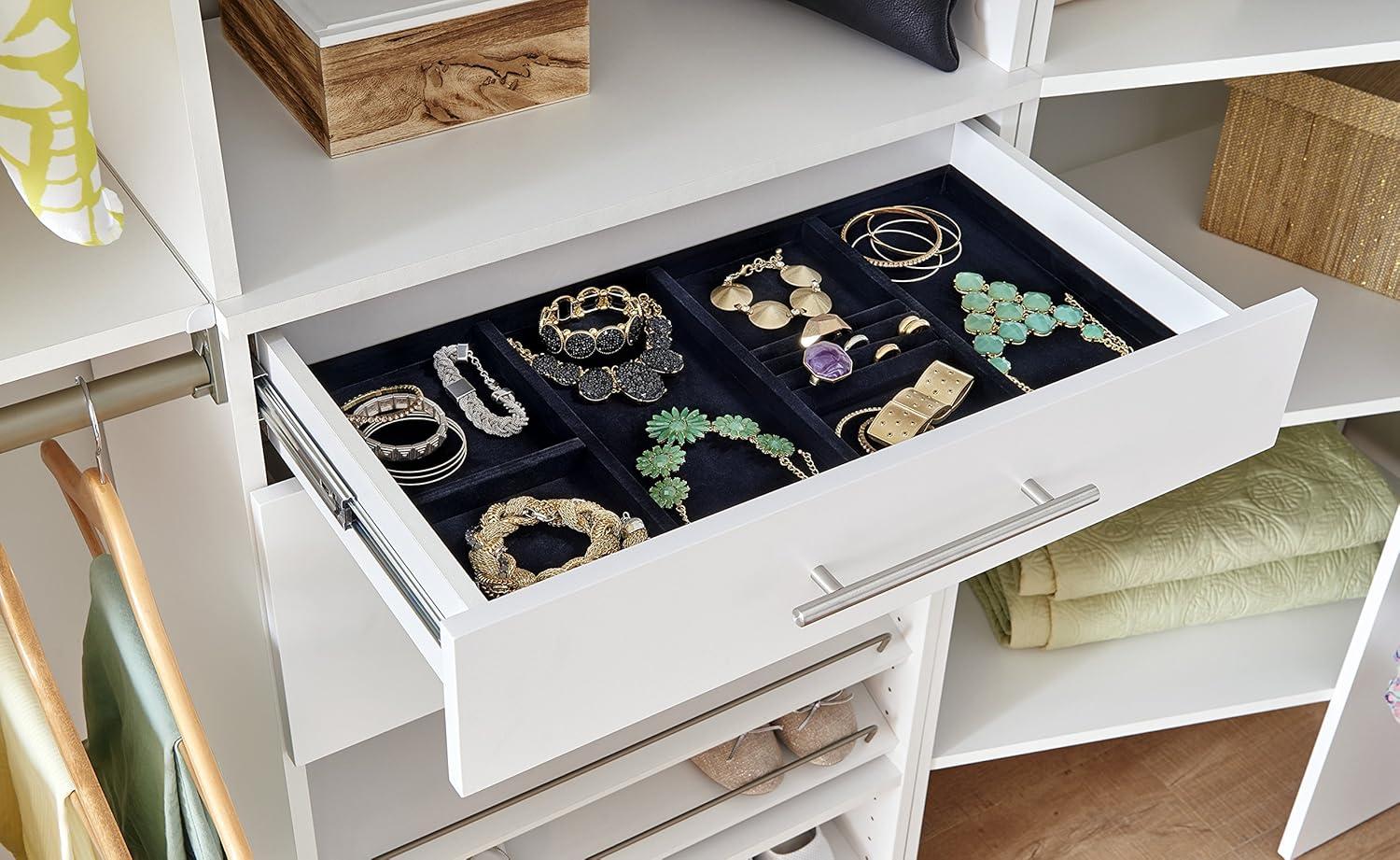 The ClosetMaid Modular Storage Collection is a versatile and trendy organization system. With four shelf unit options, the collection allows you to utilize the entire system or individual pieces to fit your space. With an easy to assemble and install DIY design, add the Modular Storage collection to your closet, office, living room, den, mudroom or anywhere in your home for organization. The Shoe Storage Shelf Unit can be easily stacked with other units, or with other Shelf Units or used on its own. It features 4 shoe shelves with fences to be installed at angle to display and organize shoes like flats, sandals, sneakers, ankle boots & more. Ideal for kid’s shoes, women’s shoes or men’s shoes. The decorative trim and full backer make this wood shelf system ideal for creating an upscale custom closet look. Add on other units like a Divided Shelf Unit, Shoe Shelf Unit or Drawer Unit to build a walk in or reach in closet, or a full office shelf system. Easily add on accessories like Shelf & Hang Rod Kits or Doors available with solid or glass panes to create the organization system of your dreams. The Modular Storage Collection is available in trendy White or Smoky Taupe finishes to fit into the style of your home.