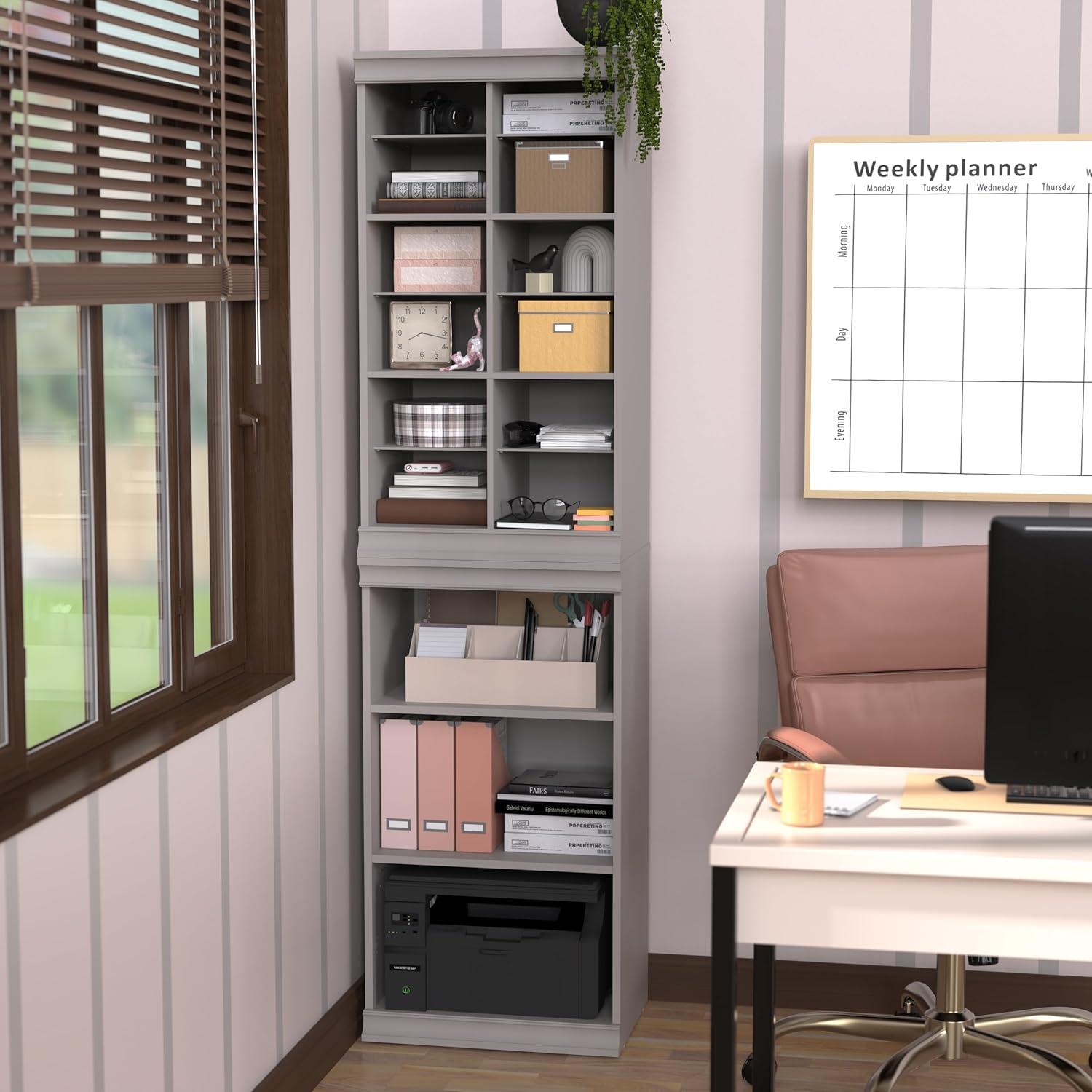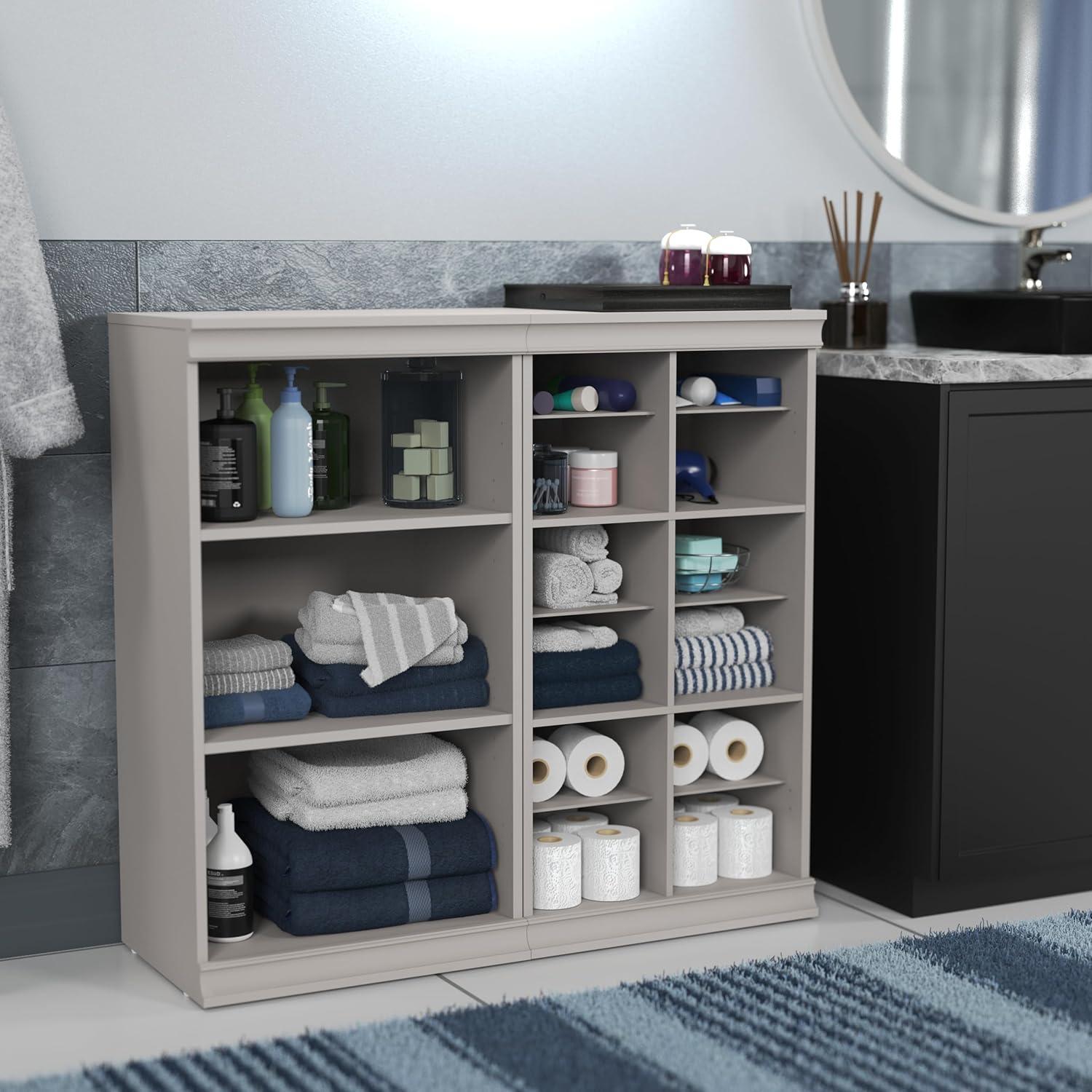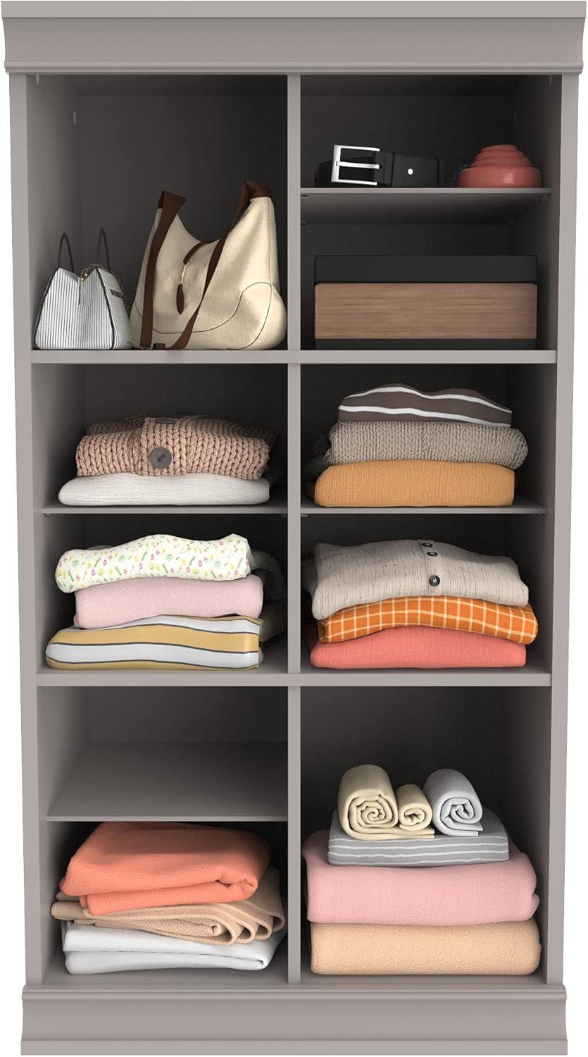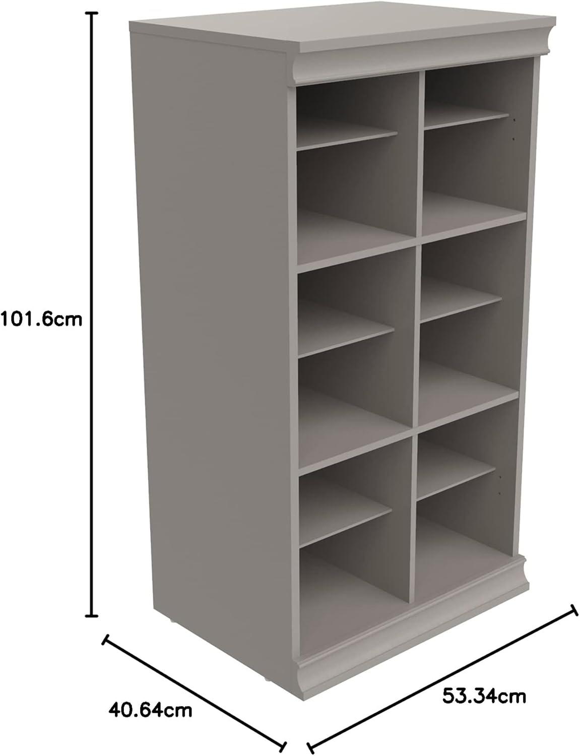ClosetMaid Modular Storage Shelf Unit with 12 Shelves, Wood Closet Organizer Adjustable, Dividers, Stacking, Full Backer, Decorative Trim, White(Taupe)