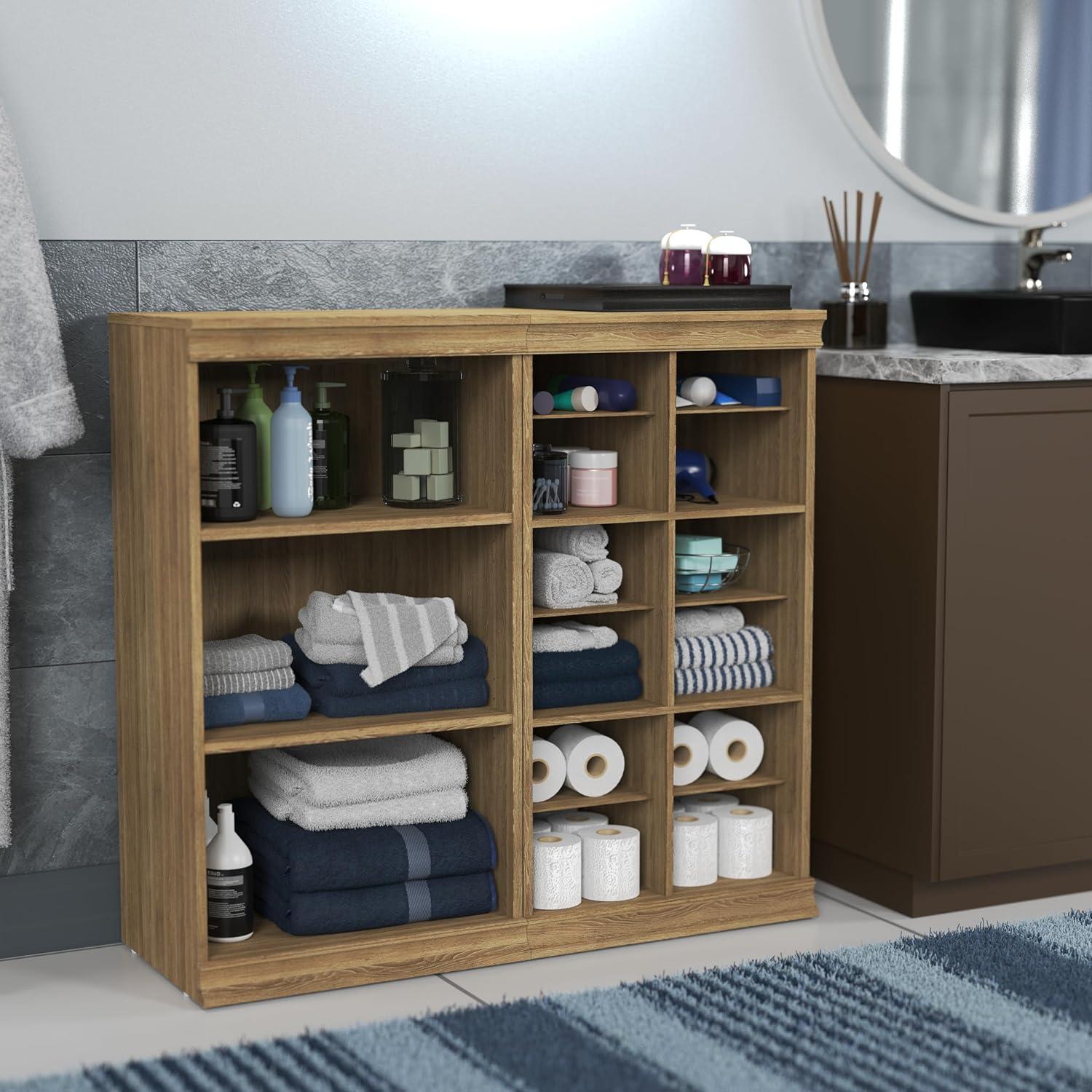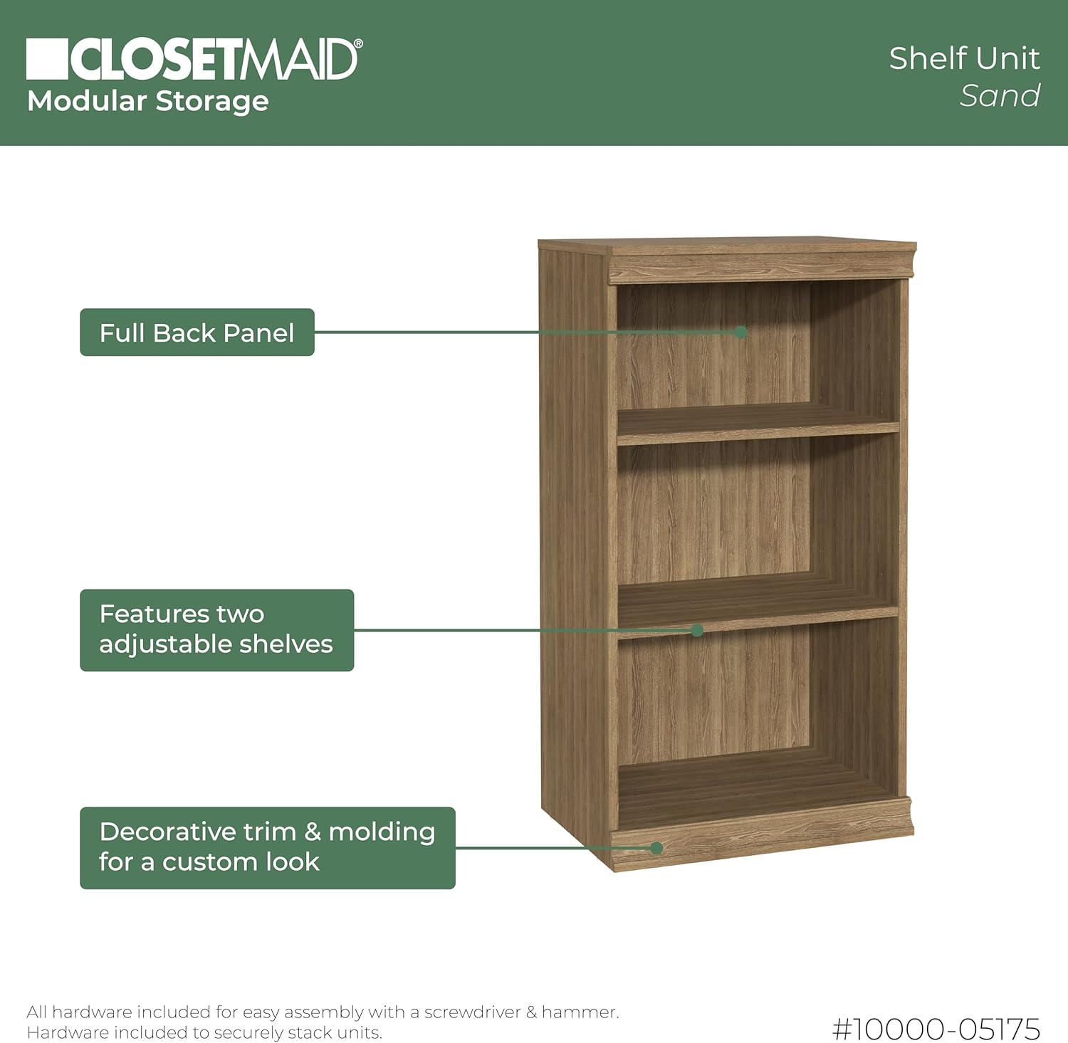 ClosetMaid Modular Storage Shelf Unit with 3 Shelves, Wood Closet Organizer Adjustable, Stacking, Full Backer, Decorative Trim, White, 40.29 H x 21.39 in. W x 15.91 in. D(Sand)