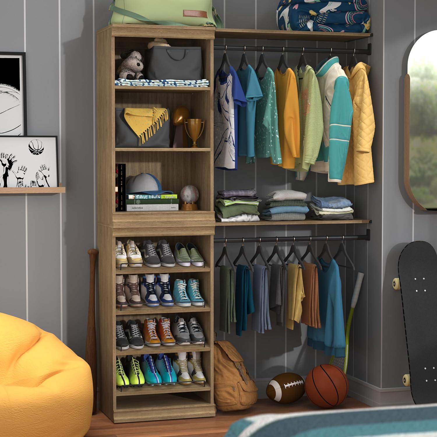 The ClosetMaid Modular Storage Collection is a versatile and trendy organization system. With four shelf unit options, the collection allows you to utilize the entire system or individual pieces to fit your space. With an easy to assemble and install DIY design, add the Modular Storage collection to your closet, office, living room, den, mudroom or anywhere in your home for organization. The Storage Shelf Unit can be easily stacked with other units, or with other Shelf Units or used on its own. It features two adjustable interior shelves to store and organizes folded clothes, sweaters, pants, jeans, shoes, blankets, towels, books, crafts or decorative items. The decorative trim and full backer make this wood shelf system ideal for creating an upscale custom closet look. Add on other units like a Divided Shelf Unit, Shoe Shelf Unit or Drawer Unit to build a walk in or reach in closet, or a full office shelf system. Easily add on accessories like Shelf & Hang Rod Kits or Doors available with solid or glass panes to create the organization system of your dreams. The Modular Storage Collection is available in trendy White or Smoky Taupe finishes to fit into the style of your home.