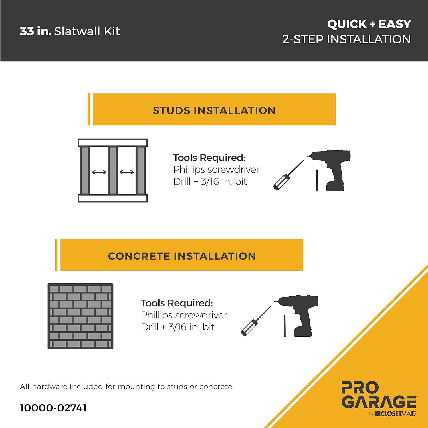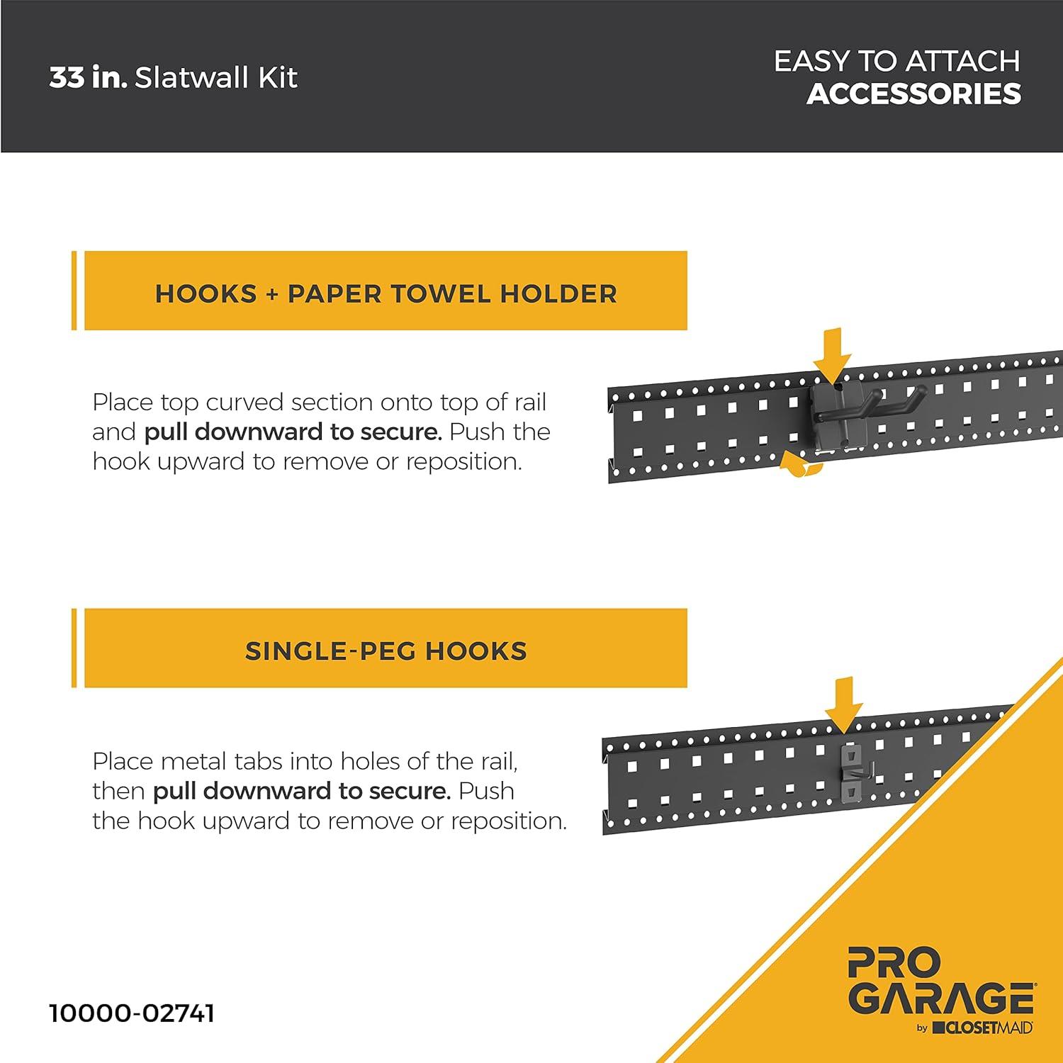 ClosetMaid ProGarage Slatwall Hang Track Kit, 42 in. W with Peg Board Hooks, Hangers, Parts Bins, Paper Towel Holder, Garage Organizer System, Black(33-Inch)