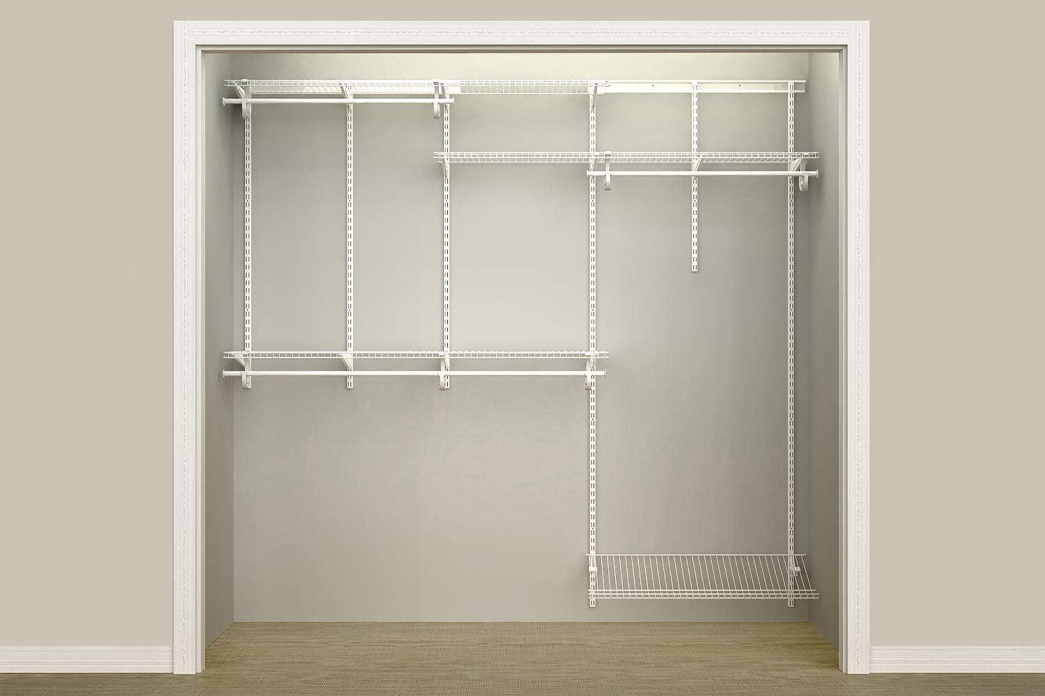 ClosetMaid ShelfTrack Wire Closet Organizer System, Adjustable from 5 to 8 Ft., With Shelves, Clothes Rods, Shoe Shelf, Hardware, Durable Steel, White(5 ft to 8 ft)